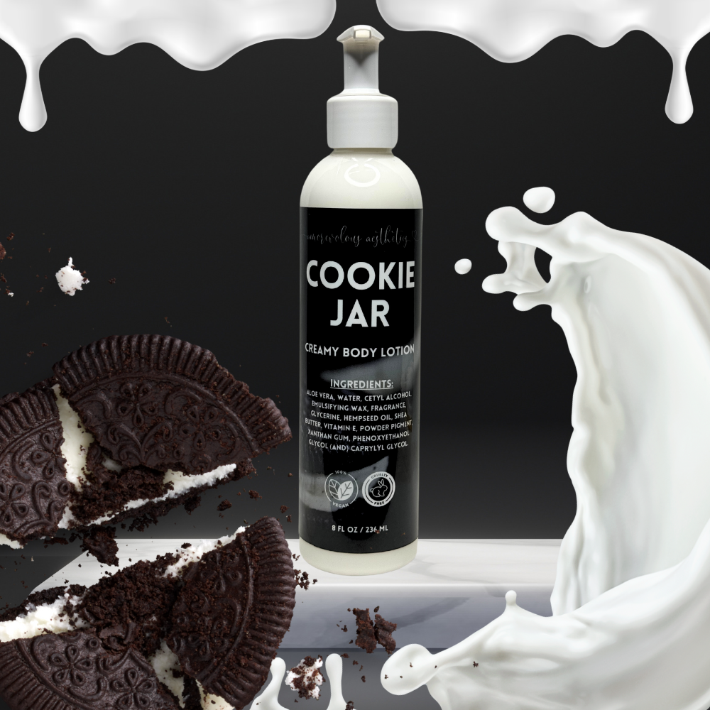 One of our customer's most favorite scents, we have the BEST cookies and cream scent! Formulated with top notes of chocolate wafer cookies and middle notes of cream, sugar and vanilla! Absolutely DELISH smelling! Try pairing with our Cookie Jar Whipped Foaming Body Scrub, prior to using the lotion for extra cookie fun!