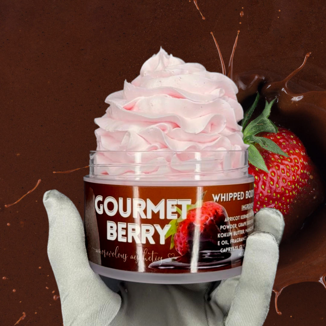 Delectable chocolate covered strawberries scented, your mouth is going to water when you smell this aroma! Try pairing with our Gourmet Berry Whipped Body Scrub for extra chocolate strawberry bliss!